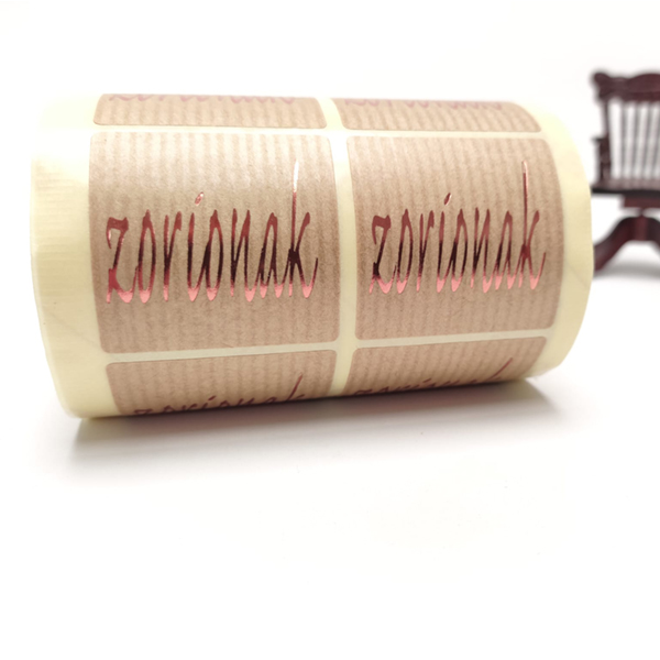 “ZORIONAK” etiketa itsaskorra euskaraz. Neurriak: 40x40mm (zabalera x altuera). Kraft hondoa, kobrezko distira testua. 500 unitateko erroilua.